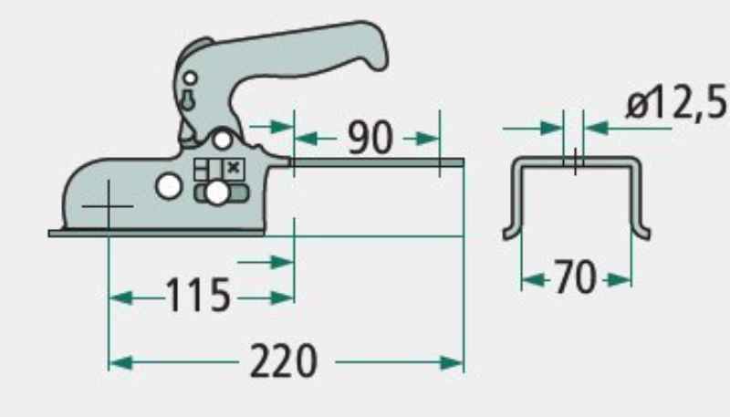 AL-BE EM 150 V-G, -1500 kg, Vkt. 70 mmLochabstand vertikal 90 mm, Bohrungen Ø 12,5 mm