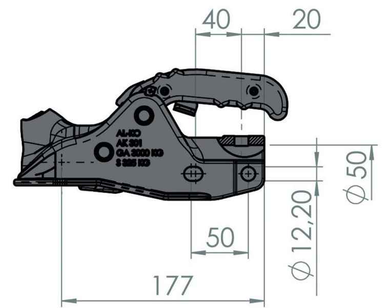 AL-KO AK 301, -3000 kg, Ø 45/50 mmLA vertikal/horiz. 40/50 mm, m. Soft-Dock, Schloss