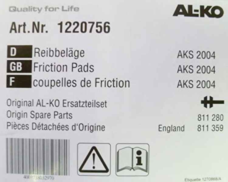 Der AL-KO Reibbelagsatz ist speziell für das AKS 2004 Bremssystem entwickelt worden und kann sowohl an der Vorder- als auch an der Hinterachse verwendet werden. Er besteht aus hochwertigen Materialien, die eine optimale Bremsleistung gewährleisten.