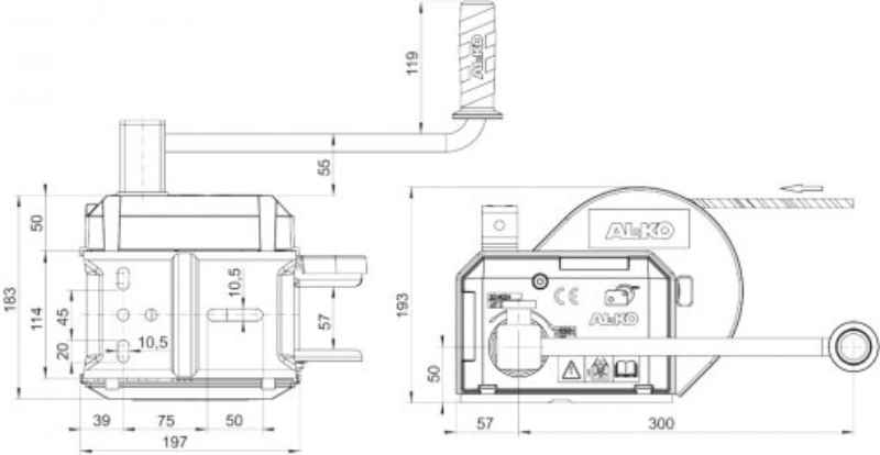 AL-KO Seilwinde 901 A Plus, Zuglast 900 kggebremst, m. Abrollautomatik, Kurbel abnehmbar