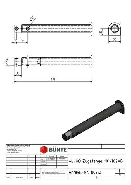 Produktinformationen "AL-KO Zugstange, f. 101/102 VB, Ø 35/40 x 380 mm"