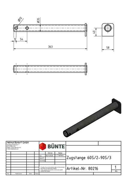 AL-KO Zugstange, f. 60 S/2, 90 S/3, Ø 35 x 360 mm