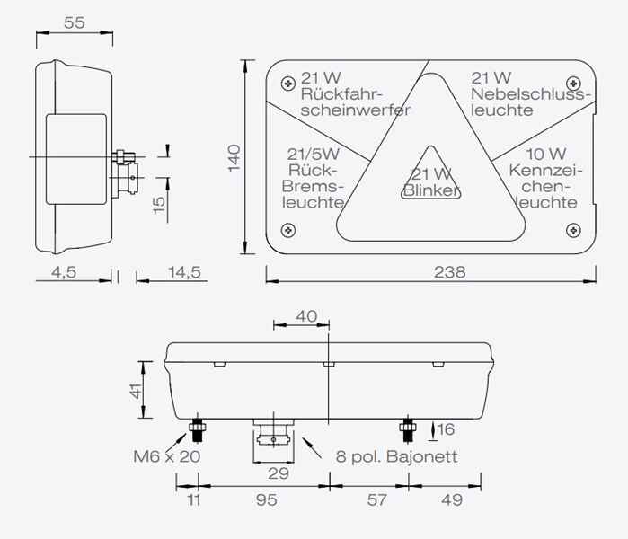 ASPÖCK Multipoint V Rückleuchte linksm. KZL. NSL. RFL. 8-poliger Bajonett