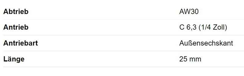 Produktinformationen "BIT AW30, 25 mm, f. Flügelbohrschraube"