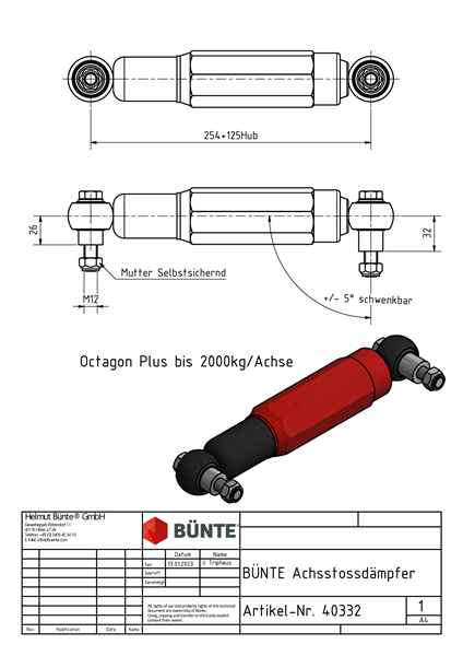 BÜNTE Achsstoßdämpfer, rot, -2000 kg, 254 mm