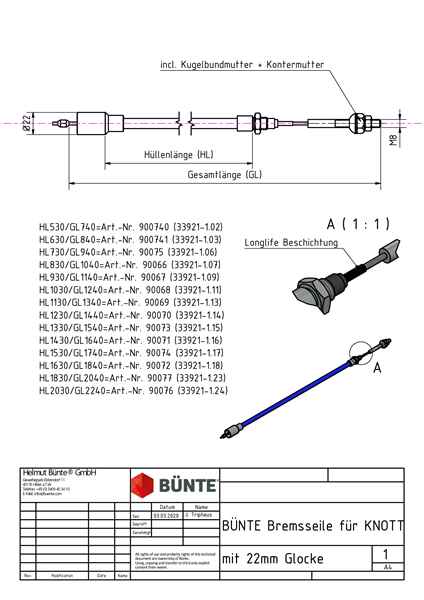 BÜNTE Bremsseil Longlife, HL 730/SL 940 mm