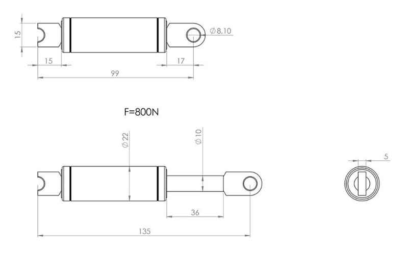 Produktinformationen "BÜNTE Gasfeder 10/22, 800 N, 135 mm, 36 mm Hub"