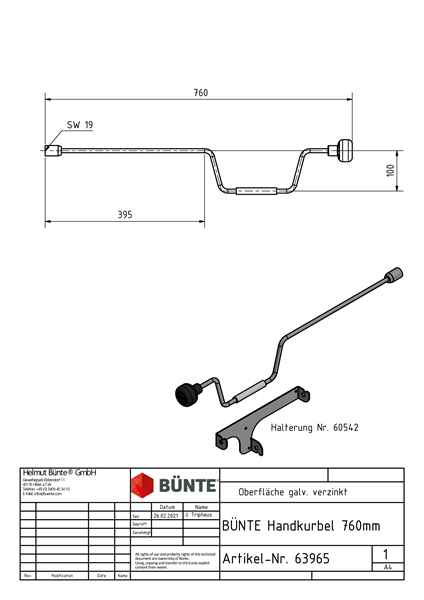 BÜNTE Handkurbel, 760 mm, Schlüsselweite 19