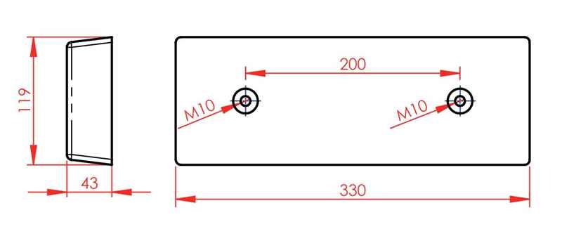 Bootsauflage, 119 x 330 x 43 mm, m. Holzeinlage2 Einschlagmuttern M10, Polyurethan