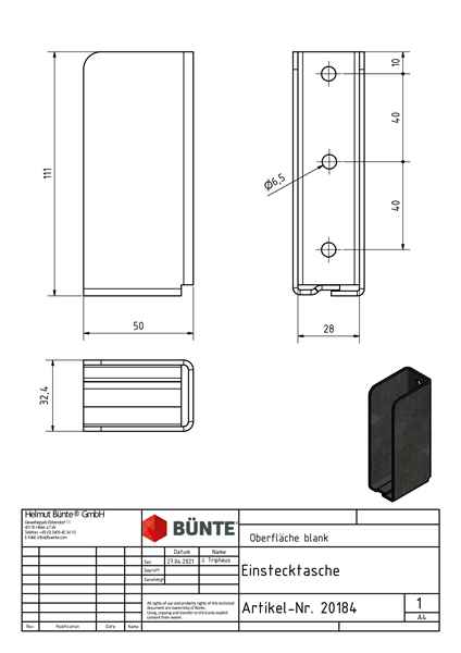 Produktinformationen "Einstecktasche, 50 x 111 x 28 (innen)/32,4 mm"
