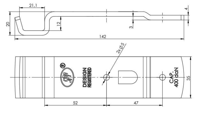 | Z-02A | 35 x 142 x 20 mm | 47 mm | Ø 5 mm |