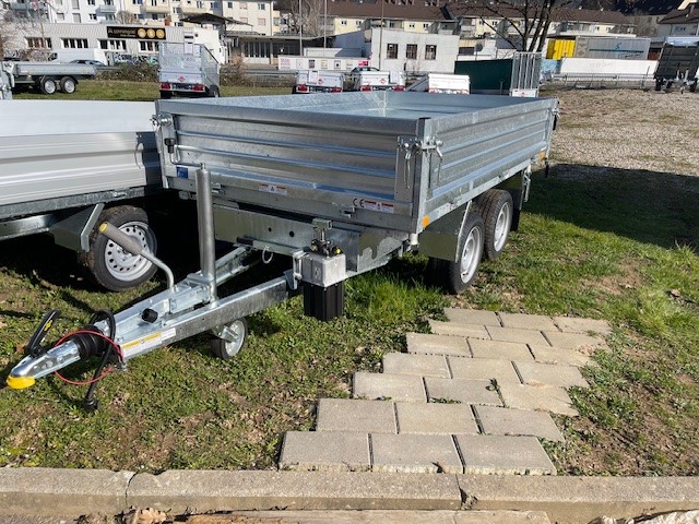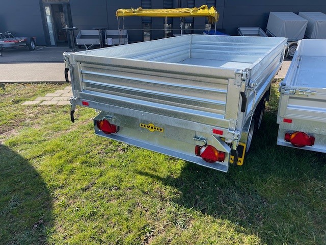 Profil-Bordwände aus verzinktem Stahlblech, kpl. abnehmbar, V-Zugdeichsel tauchbad feuerverzinkt, Kippbrücke aus Stahl, aus einem Stück gefertigt, Fahrgestell, Kippbrücke und Bordwände im Tauchbad feuerverzinkt, Handpumpe, optional elektrische Hydraulikpumpe ab 3000 kg zul. Gesamtgewicht Elektro- und Handpumpe, Humbaur Multifunktionsbeleuchtung, 13-poliger Stecker und Rückfahrscheinwerfer, Hintere Klappe pendelbar, Anbinderinge im Brückenboden montiert, Zugkraft 800 kg pro Anbindering, Bohlenschacht als Vorbereitung für Alubohlen zum einfachen Nachrüsten, Stützrad