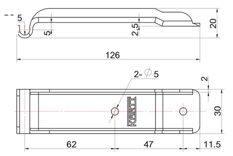 Der KARTT Gegenhalter ist ein gekröpfter Halter mit den Maßen 30 x 126 x 20 mm.