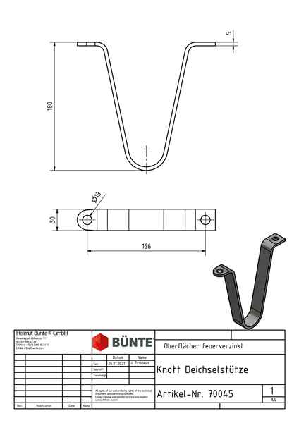 Die KNOTT Deichselstütze mit einer Höhe von 180 mm und einem Lochabstand von 166 mm ist eine hochwertige Lösung für Anhänger und Wohnwagen. Sie ist aus Stahl gefertigt und feuerverzinkt, was eine hohe Stabilität und Langlebigkeit gewährleistet.