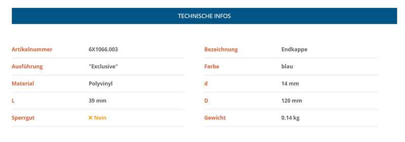 KNOTT Endkappe, Ø 120 x 39 mm, Bohrung Ø 14 mmblau, Polyvinyl