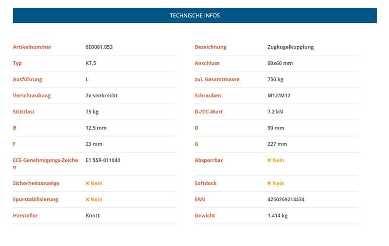 Produktinformationen "KNOTT K7,5-L, -750 kg, Vkt. 60 mm"