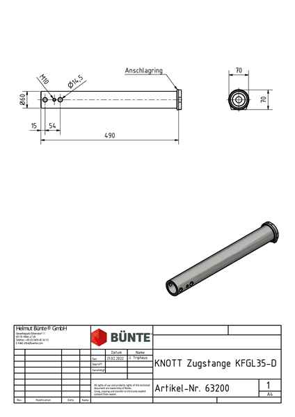 KNOTT Zugstange, f. KFGL35-D, Ø 60 x 500 mm
