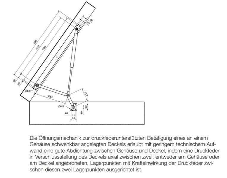 Unsere Öffnungsmechanik für Aluminium-Deckel bietet eine zuverlässige und effiziente Lösung für das Öffnen von Deckeln aus Aluminium. Mit dieser Mechanik können Sie Deckel mühelos und sicher öffnen, ohne dabei auf eine Gasfeder angewiesen zu sein.