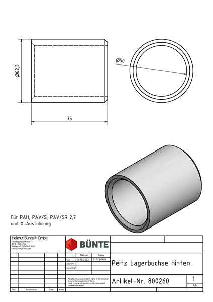 Lagerbuchse, hinten, f. PEITZ PAV/SR 2,7/2,7 X