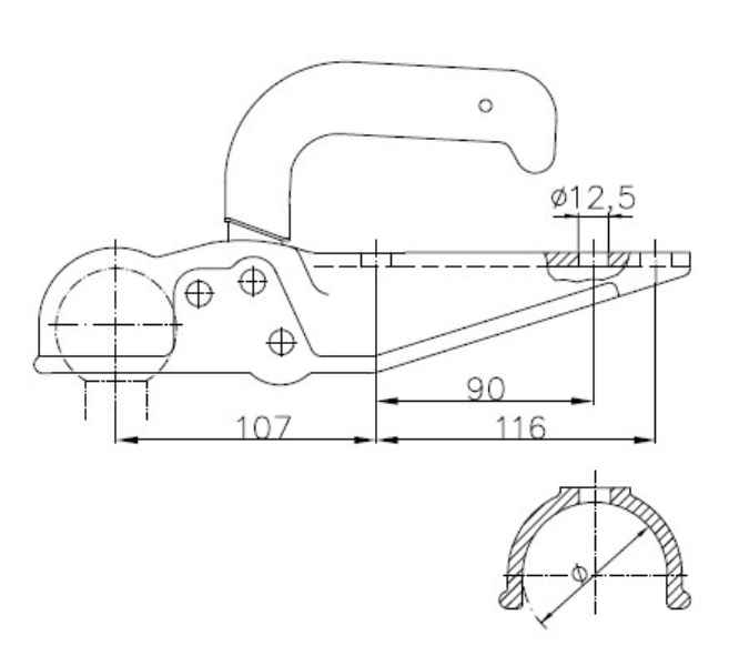 WINTERHOFF WW 20-F1, -2000 kg, Ø 60 mmLA vertikal 90/116 mm, Bohrungen Ø 12,5 mm