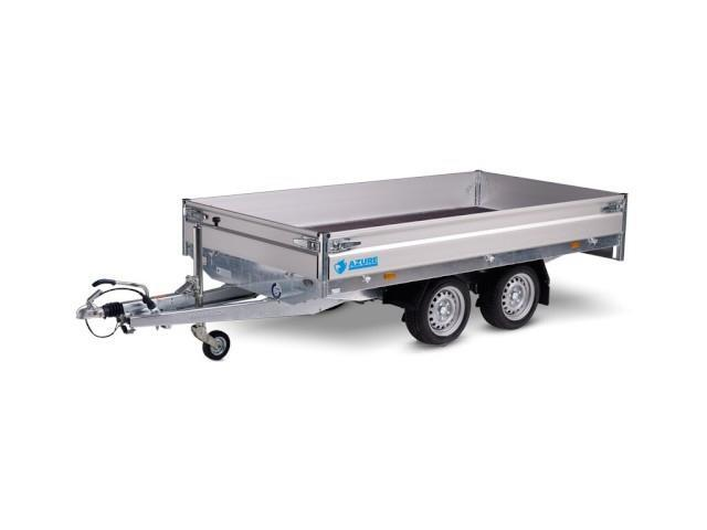V-Zugdeichsel Tauchbad feuerverzinkt, 13-poliger Stecker und Rückfahrscheinwerfer, Bodenplatte 18 mm stark, Bordwände aus eloxiertem Aluminium mit versenkten Verschlüssen, kpl. abnehmbar, Zurringe im V-Außenrahmenprofil integriert, Zugkraft 400 kg pro Zurring, Dekra geprüft, Stützrad