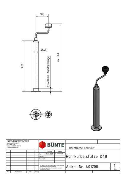 Rohrkurbelstütze, Ø 48 x 420 mm