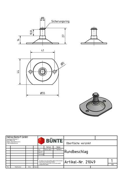 Der Rundbeschlag BHP8-2 ist ein hochwertiges Produkt mit den Maßen 44 x 55 x 28,5 mm und einem Durchmesser von 8 mm. Er eignet sich ideal für verschiedene Anwendungen.