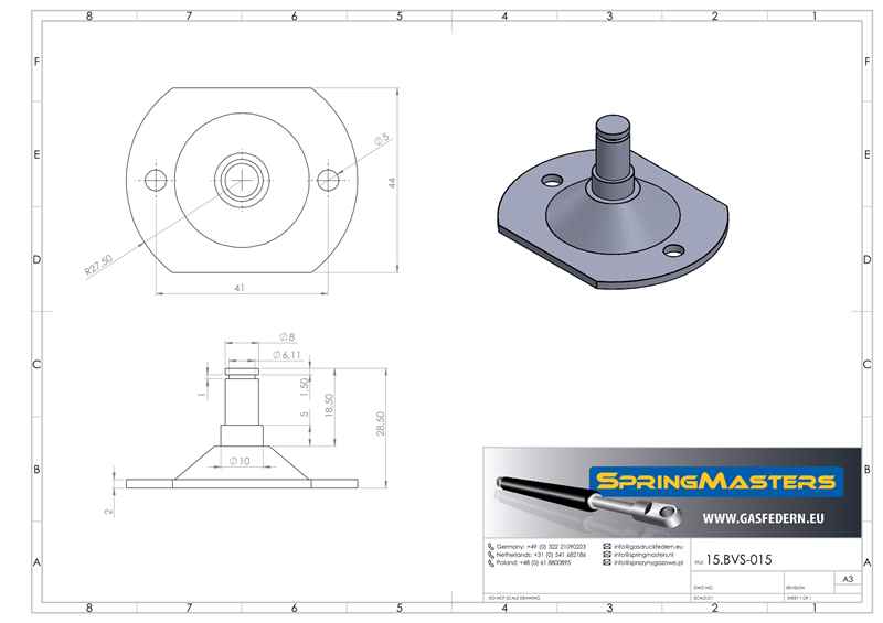 Produktinformationen "Rundbeschlag BHP8-2, 44 x 55 x 28,5 mm, Ø 8 mm"