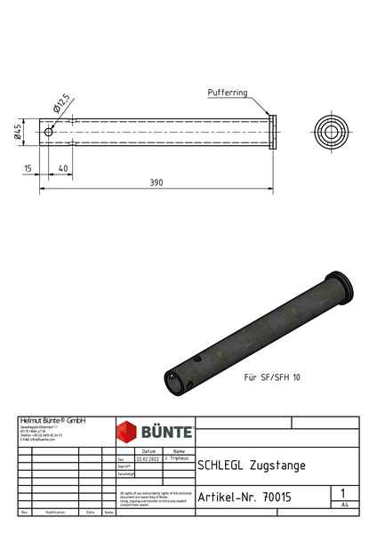 SCHLEGL Zugstange, f. SF/SFH10, Ø 45 x 403 mm