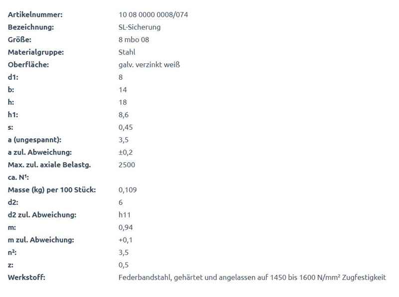 Produktinformationen "SL-Sicherung, 18 x 14 x 0,45 mm, Ø 8 mm"