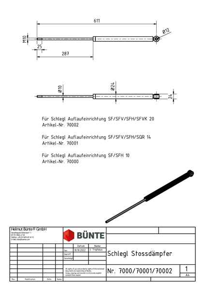 STABILUS Auflaufstoßdämpfer, f. SCHLEGL SF/SFH10Ø 24 mm, 611 mm, Bohrung Ø 12 mm/Gewinde M10