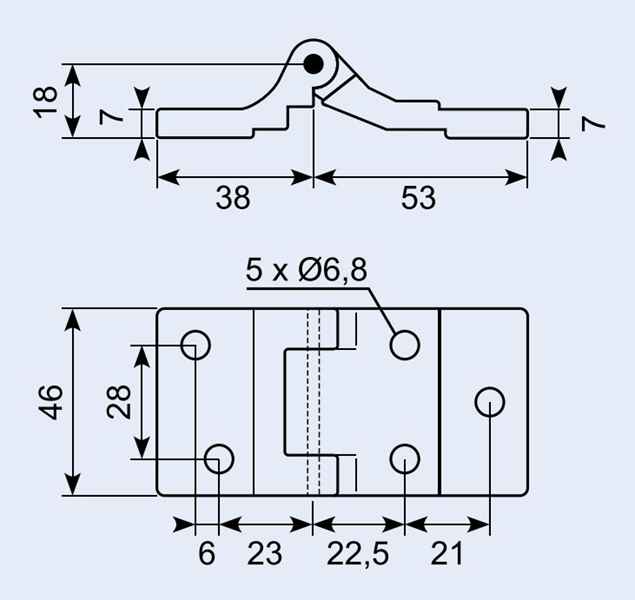 Produktinformationen "Scharnier, 46 x 91 x 18 mm, Bohrungen Ø 6,8 mm"