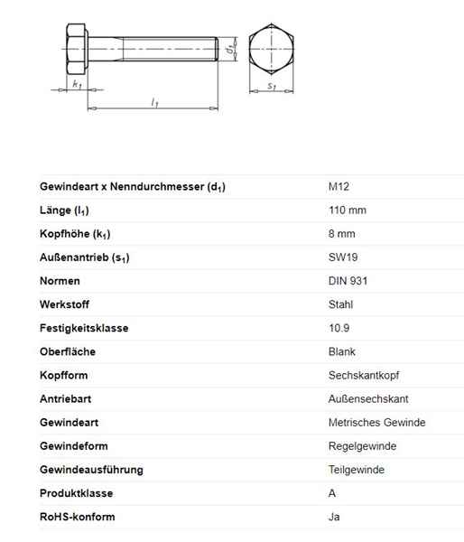 - DIN 931 konform
