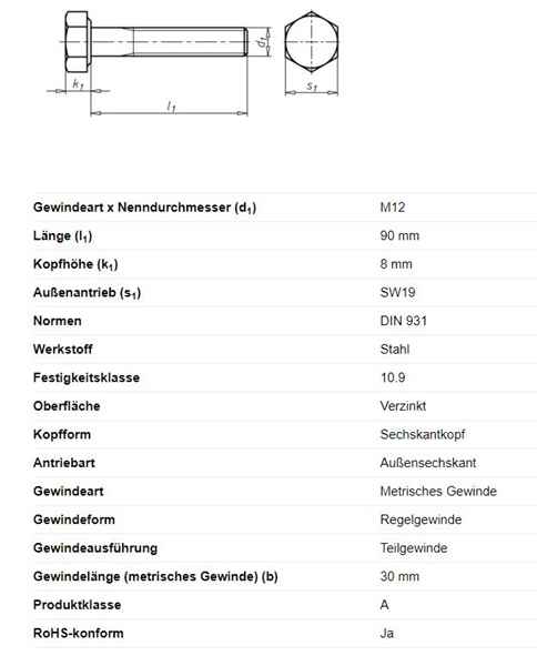 - Norm: DIN 931