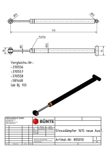 Stabilus-Stoßdämpfer f. 161 Sneu, 505 mm, 370556